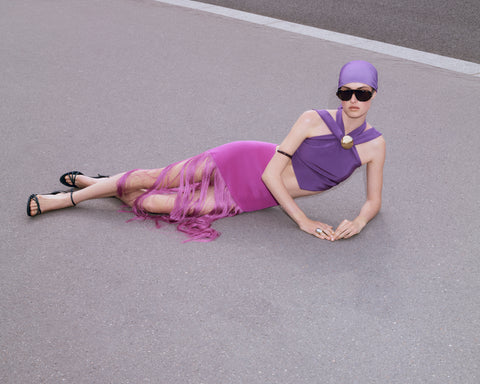 Lilou Skirt is crafted from luxurious mercerized silk with cascading fringes along the hem that add playful movement and texture. The lightweight fabric in vibrant magenta drapes beautifully with a high-waisted silhouette that brings bold, feminine energy. Perfect for evening events and statement looks when you want all eyes on you.